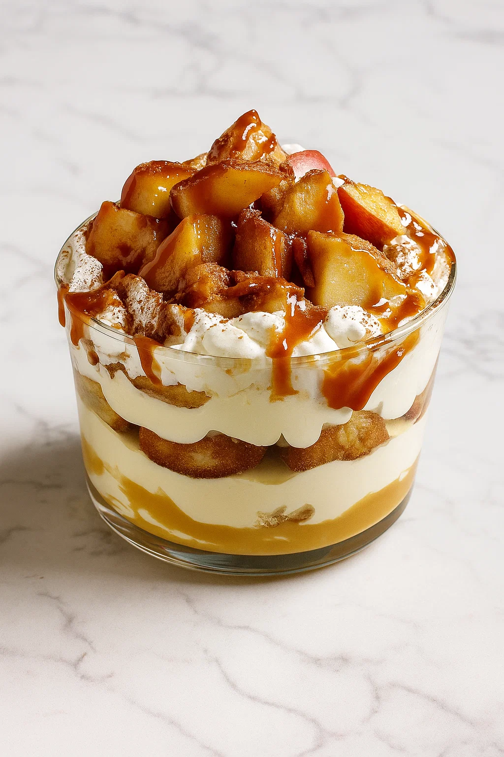 👉 Opzione guarnizione: aggiungete qualche mela caramellata, gocce di caramello o briciole di biscotti.