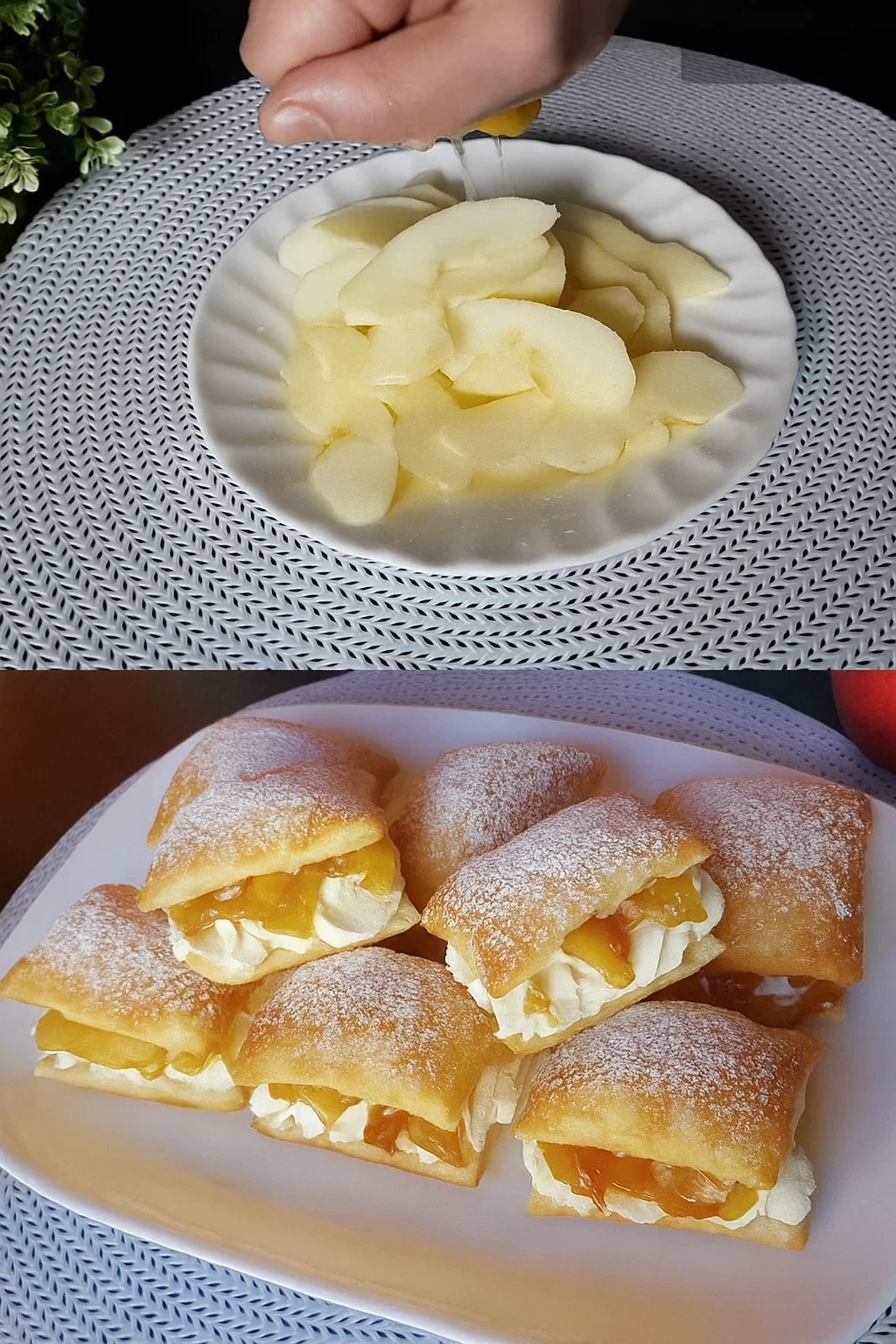 Questa ricetta italiana rivisitata unisce la leggerezza della pasta sfoglia, la dolcezza delle mele e la cremosità del mascarpone. Un trio perfetto per una merenda autunnale o un elegante fine pasto.