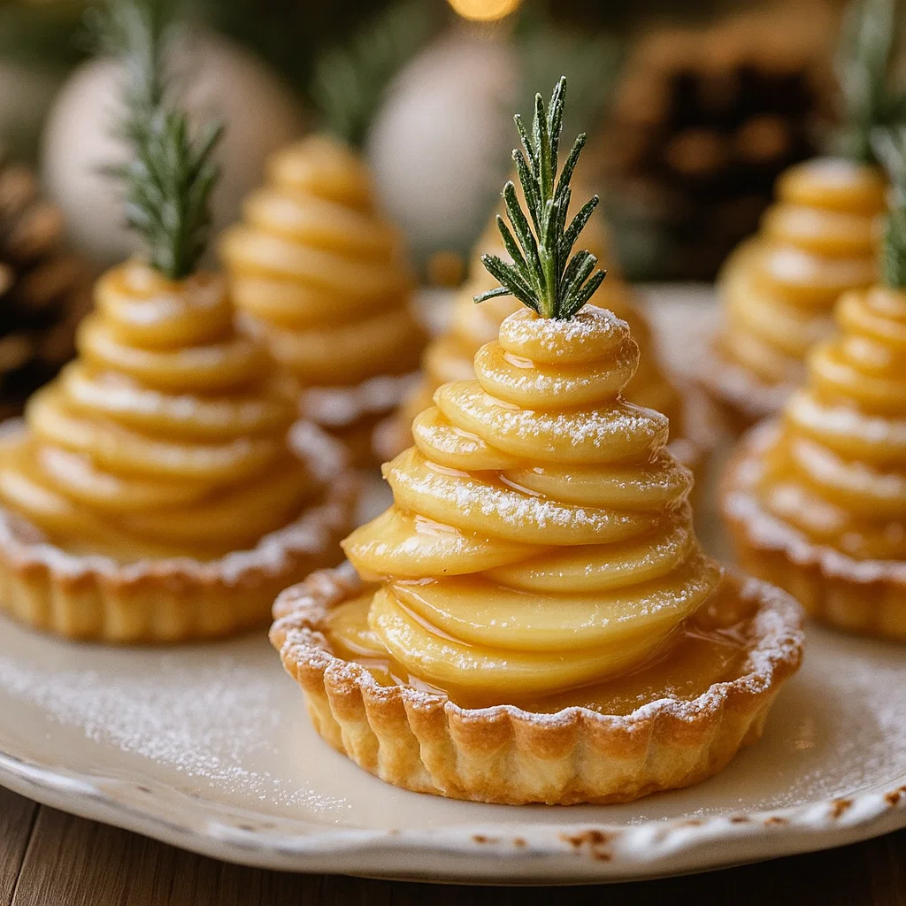 Tartellette a forma di albero di Natale con mele caramellate e brie