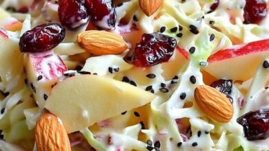 Insalata di cavolo fresca e fruttata con mele, mirtilli rossi e mandorle